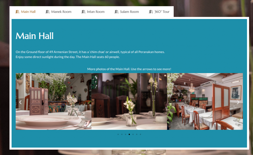 The virtual tour gives website visitors a sneak peak into the interior of the restaurant and what they can expect from making a reservation here for their special event.